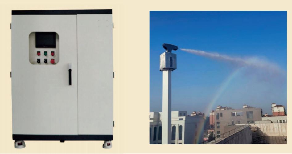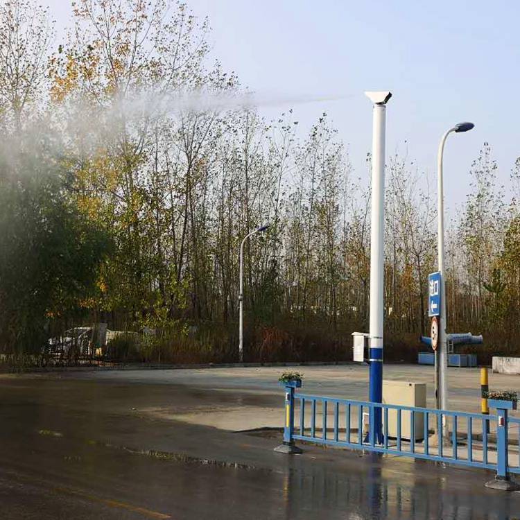 楓葉霧樁智能噴霧除塵系統(tǒng)是一種針對(duì)室外大范圍揚(yáng)塵場(chǎng)所的降塵設(shè)備,系統(tǒng)主機(jī)將水通過加壓輸送到遠(yuǎn)距離的高桿旋轉(zhuǎn)噴頭,高速噴射,霧化后的水汽能夠廣泛、充分的吸附空氣中的塵霾,從而達(dá)到有效的抑塵、降塵效果。